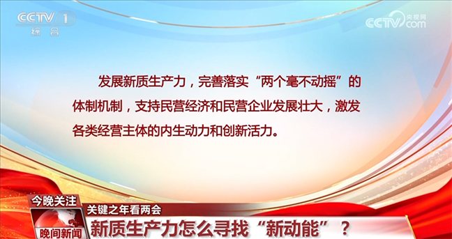 發(fā)展新質(zhì)生產(chǎn)力,完善落實(shí)“兩個(gè)毫不動(dòng)搖”的體制機(jī)制,支持民營(yíng)經(jīng)濟(jì)和民營(yíng)企業(yè)發(fā)展壯大,激發(fā)各類經(jīng)營(yíng)主體的內(nèi)生動(dòng)力和創(chuàng)新活力。