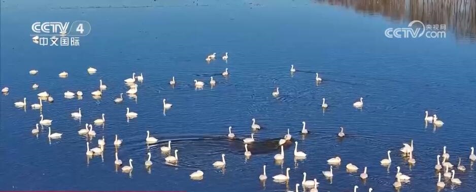 大批國家二級重點(diǎn)保護(hù)野生動(dòng)物大天鵝在遷徙途中飛臨河北唐山市曹妃甸區(qū),它們在濕地、農(nóng)田等水域覓食、嬉戲,悠閑地享受著這份春日美好。曹妃甸是東亞至澳大利西亞候鳥遷徙路線重要的停歇地,每年春秋兩季到此逗留的鳥類達(dá)數(shù)百萬只,為曹妃甸增添了自然生態(tài)之美。
