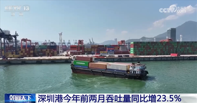 港口是國(guó)民經(jīng)濟(jì)發(fā)展的“晴雨表”,今年以來(lái),深圳港迎來(lái)海運(yùn)出貨高峰。據(jù)深圳市交通運(yùn)輸局統(tǒng)計(jì),今年前兩個(gè)月,深圳港集裝箱吞吐量達(dá)483萬(wàn)標(biāo)箱,同比增長(zhǎng)23.5%。