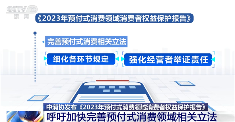 央視網(wǎng)消息:中國消費(fèi)者協(xié)會(huì)3月12日發(fā)布《2023年預(yù)付式消費(fèi)領(lǐng)域消費(fèi)者權(quán)益保護(hù)報(bào)告》(以下簡(jiǎn)稱《報(bào)告》),呼吁加快完善預(yù)付式消費(fèi)領(lǐng)域相關(guān)立法,強(qiáng)化經(jīng)營者的舉證責(zé)任,落實(shí)對(duì)違法經(jīng)營者的信用約束和懲戒措施。