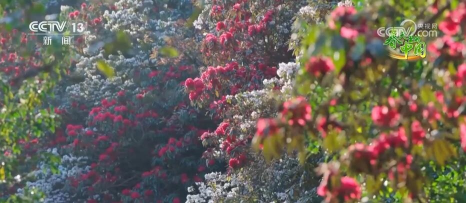 初春時節(jié),百花爭艷?,F(xiàn)在,我們看到的是云南楚雄州武定縣的萬畝野生馬纓花。海拔2600多米的崇山峻嶺間,紅黃白粉相間搭配,掩映在翠綠的叢林之中;古道旁,牛羊成群,峰巒疊翠,迷人的春景生機盎然,令人心曠神怡。歷史上,這片區(qū)域曾經(jīng)是貿(mào)易往來的古驛道,傳承延續(xù)了上千年的彝族羅婺文化,馬纓花更是當(dāng)?shù)匾妥迦罕姷募橹畼?。春風(fēng)送暖,花期可持續(xù)到3月底。