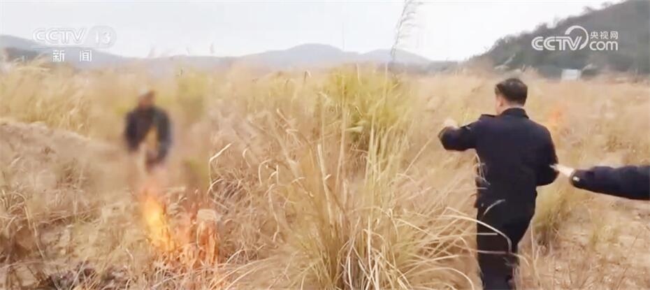 抵達現(xiàn)場后消防人員看到,一個村民正在林區(qū)附近邊吸煙邊焚燒雜草。現(xiàn)場以冬茅草等易燃燒的植被為主,旁邊就是林區(qū),一旦起風,火勢可能會失控蔓延引發(fā)山火。