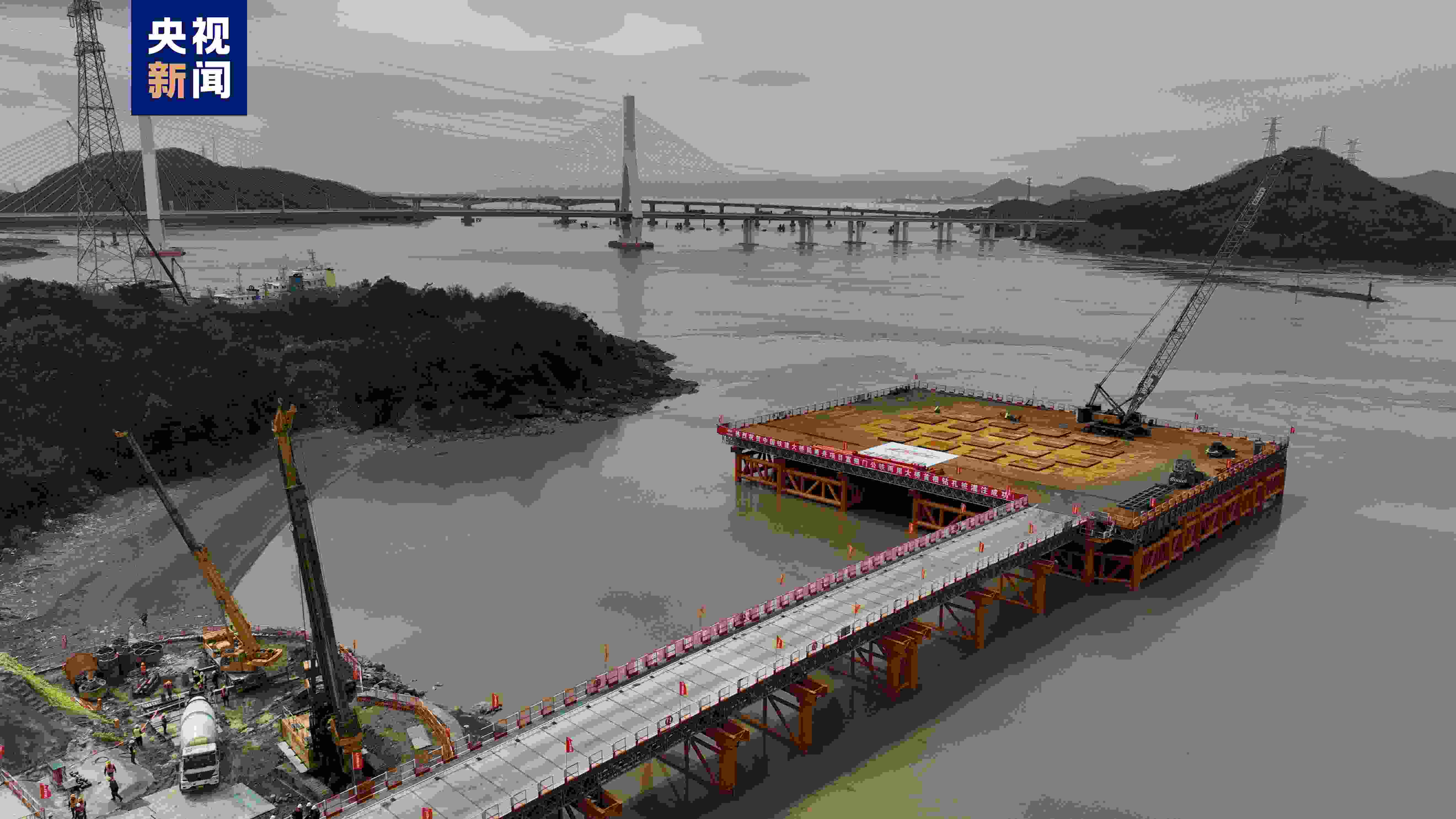 在舟山響礁門(mén)山咀區(qū)域,隨著最后一方混凝土灌入樁長(zhǎng)10米,樁徑2米的鉆孔樁中,甬舟鐵路富翅門(mén)公鐵兩用大橋首根樁基灌注完成,計(jì)劃于今年完成全橋樁基礎(chǔ)施工。