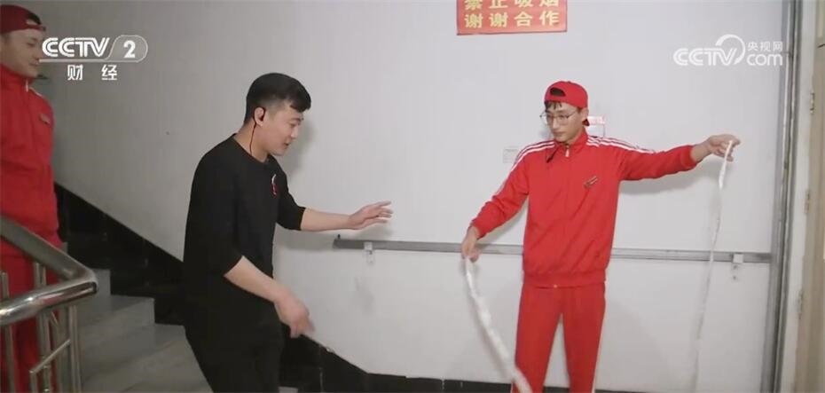 中午兩點(diǎn)左右,史昌換班,可以休息一會兒,趁著這個空檔,史昌帶上兩個徒弟去樓梯間訓(xùn)練甩面。甩面是史昌所在火鍋店吸引客流的重要業(yè)務(wù),去年史昌一共帶了3個徒弟。隨著門店生意日漸紅火,史昌預(yù)計今年得帶出9個徒弟。