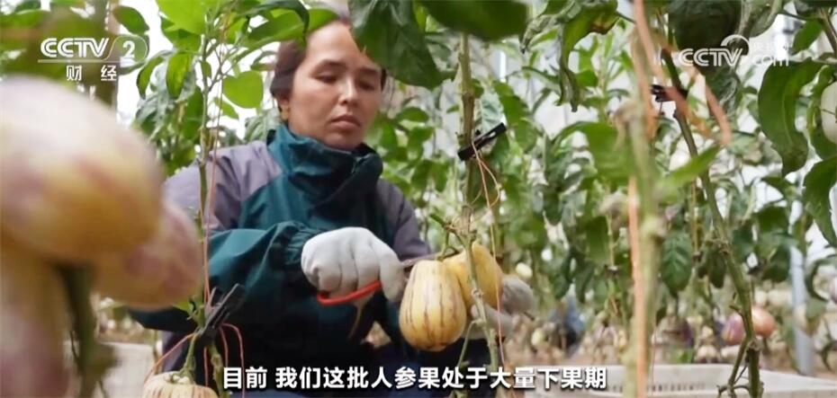 和田縣萬畝設(shè)施農(nóng)業(yè)種植基地技術(shù)員施坤年稱:“每畝的經(jīng)濟(jì)效益在8萬元到10萬元。目前,我們這批人參果處于大量下果期,可持續(xù)到6月份?!?/p>