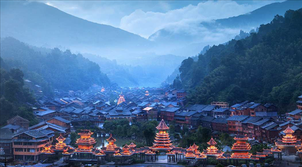 這里素有“侗鄉(xiāng)第一寨”的美譽(yù),2005年被《中國國家地理》評選為“中國最美的六大鄉(xiāng)村古鎮(zhèn)”之一。肇興侗寨四面環(huán)山,寨子建于山中盆地,兩條小溪匯成一條小河穿寨而過,去了才能真切地感受到深山里的世外桃源。