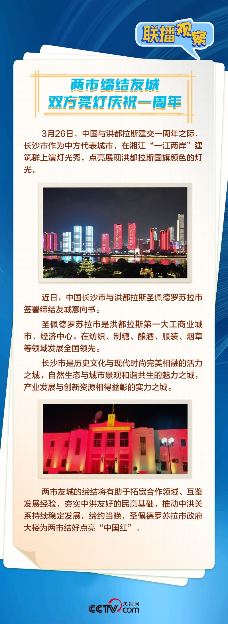 3月26日,習近平主席同洪都拉斯總統(tǒng)卡斯特羅互致賀電,慶祝兩國建交一周年。