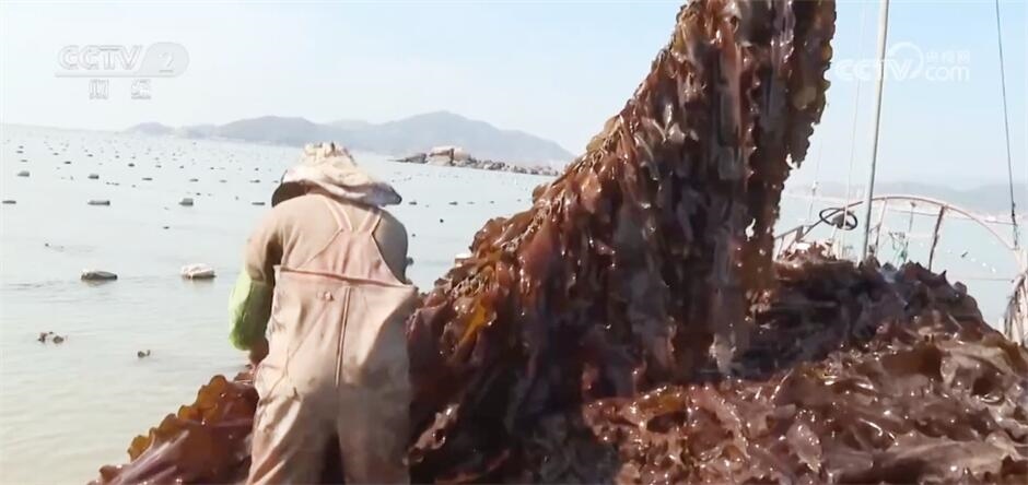 眼下,福建福州連江縣10.3萬畝優(yōu)質(zhì)海帶進(jìn)入采收期,不少海帶養(yǎng)殖戶搶抓晴好天氣收割海帶,海面上一片熱鬧、繁忙景象。?