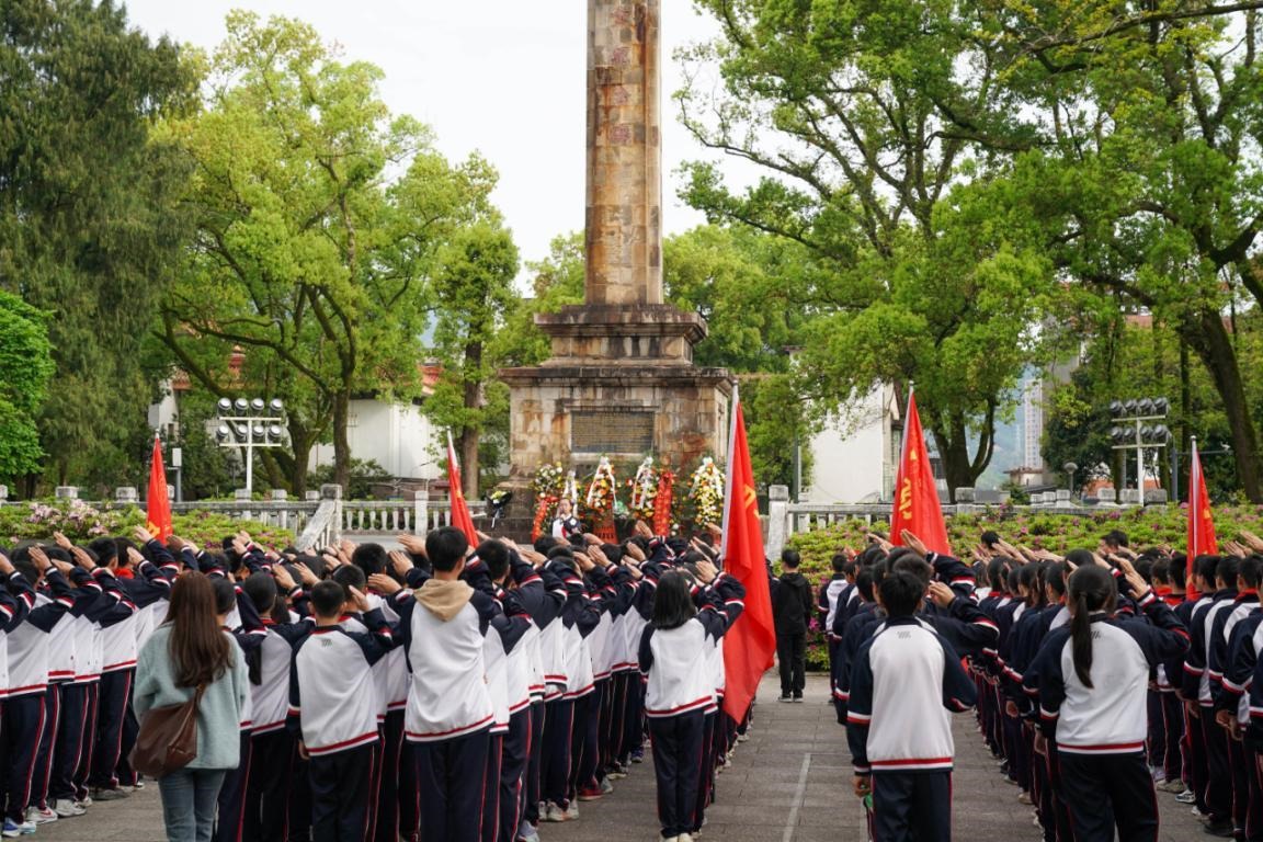 △4月1日,福建武夷山市少先隊員在列寧公園閩北革命烈士紀(jì)念碑前宣誓。