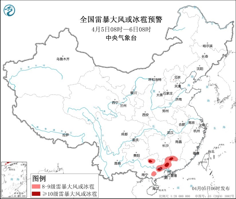 央視網(wǎng)消息:中央氣象臺4月5日06時發(fā)布強對流天氣藍色預警。預計4月5日08時至6日08時,江西南部、廣西東部、廣東中西部和北部等地的部分地區(qū)將有8級以上雷暴大風或冰雹天氣;其中,廣西東北部、廣東中西部和北部等地的局地將有10級以上雷暴大風;另外,湖南南部、江西南部、福建西部、貴州西北部和中部、廣西東部、廣東中西部和北部等地的部分地區(qū)將有小時雨量大于20毫米的短時強降水天氣;其中,廣西東部和廣東中西部等地的局地最大小時雨量大于50毫米,個別地方可達80毫米以上。
