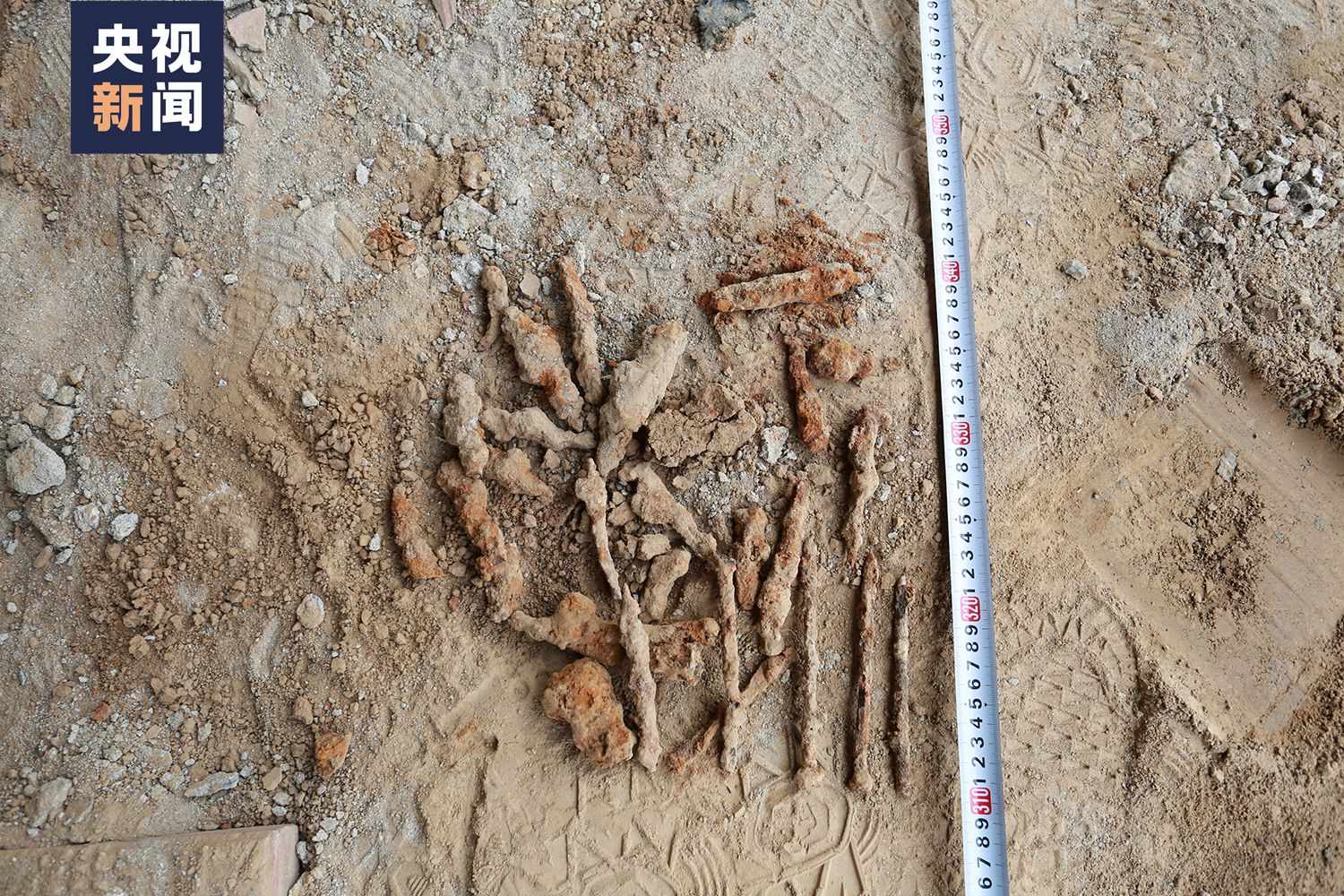 △雪村戰(zhàn)斗烈士墓出土的鐵釘,猜測(cè)是當(dāng)?shù)厝罕娪脕?lái)掩埋烈士的門(mén)板腐蝕后留下的。