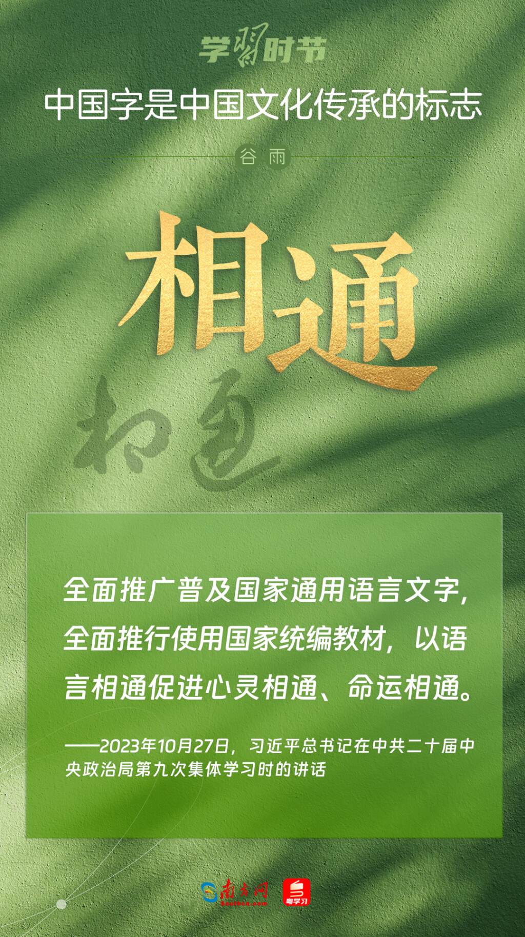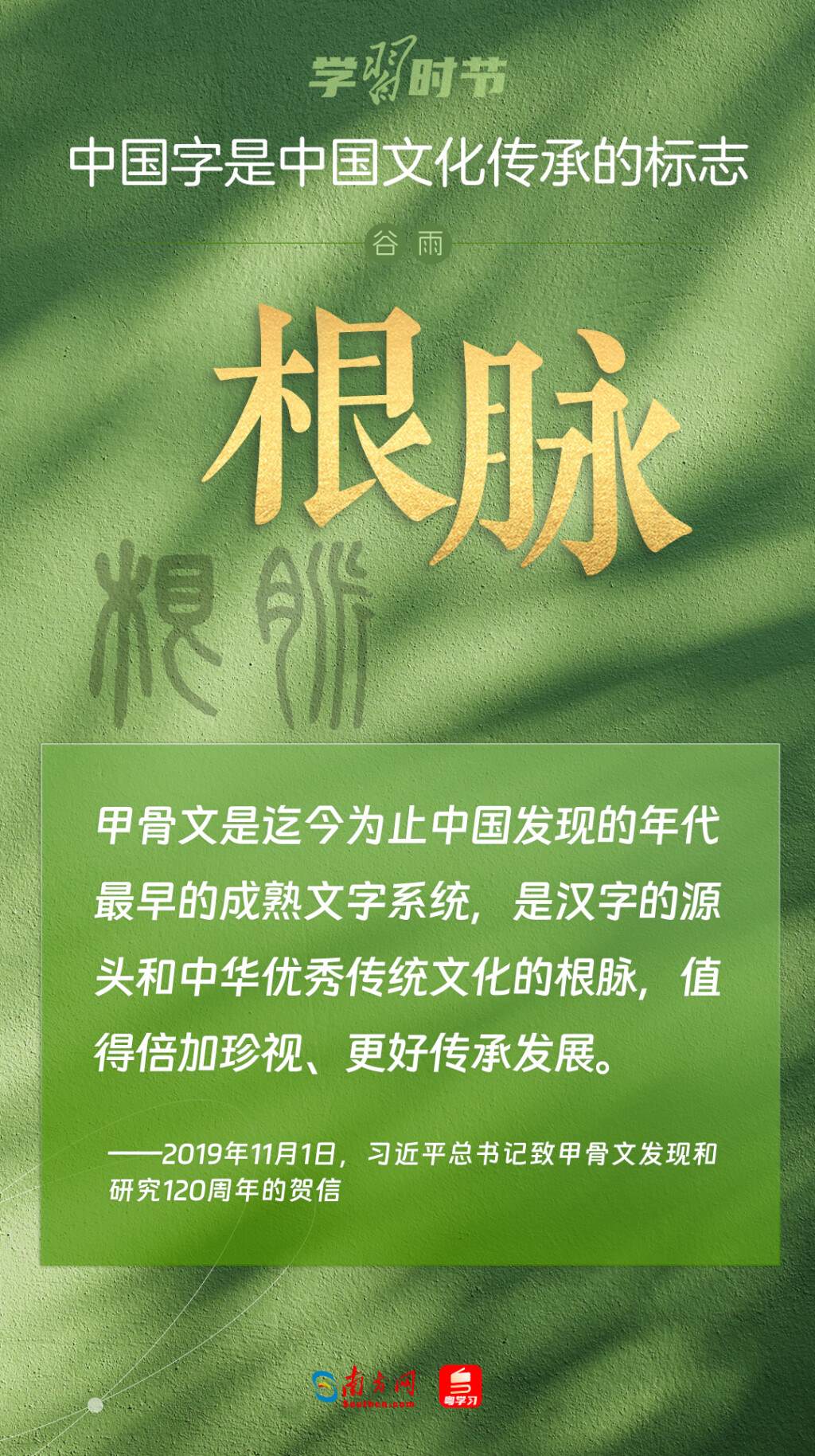 谷雨將至,讓我們一起學(xué)習(xí)習(xí)近平總書(shū)記談漢字、談文化傳承的經(jīng)典話語(yǔ),感悟和領(lǐng)略中華優(yōu)秀傳統(tǒng)文化的魅力。