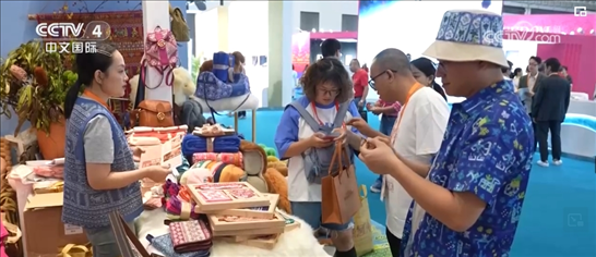 首次參展國家?guī)淼莫毺卣蛊穫涫芮嗖A。在馬來西亞展臺,拖鞋、餅干、燕窩吸引了不少消費者駐足。而在蒙古國國家館,羊絨制品備受關(guān)注。