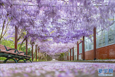 每年四月,迎來紫藤盛花期。近日,江蘇句容后白鎮(zhèn)張廟茶場的紫藤花進入了盛花期,紫藤花一路搖曳盛放,宛如流動的紫色瀑布傾瀉而下,吸引了不少市民游客前來打卡。
