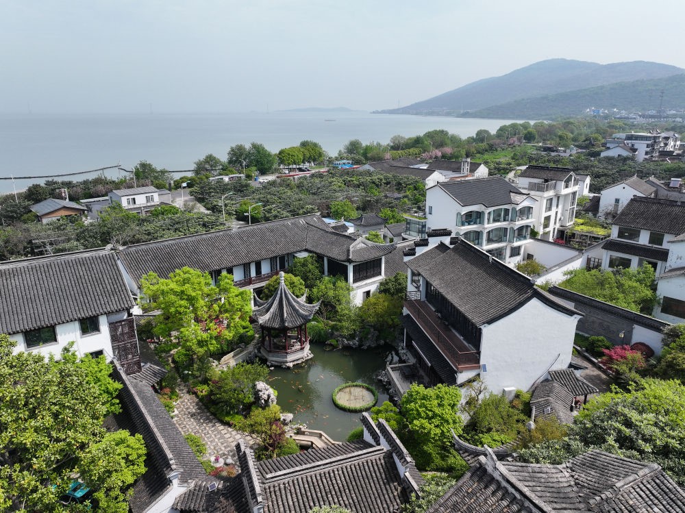 這是在江蘇省蘇州市吳中區(qū)東山鎮(zhèn)太湖畔拍攝的民宿(2024年4月11日攝,無人機(jī)照片)。