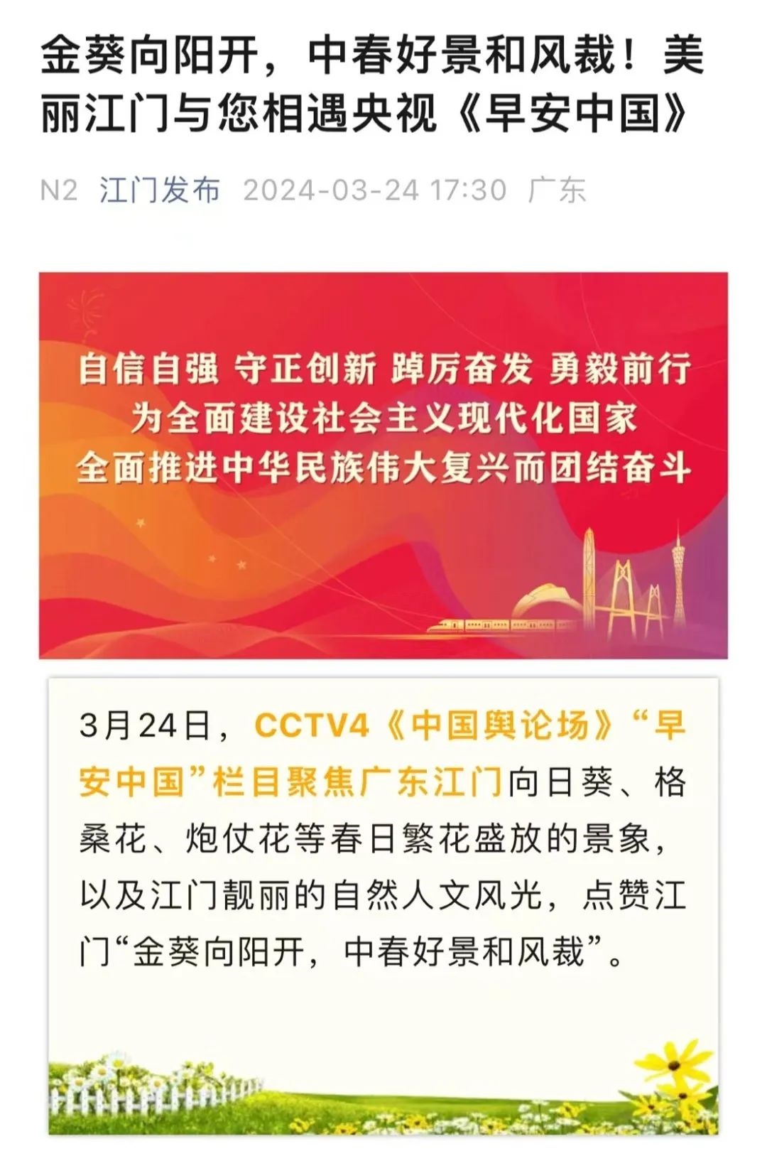 “《早安中國(guó)》入人心,美麗河山春色濃?!?/p>
