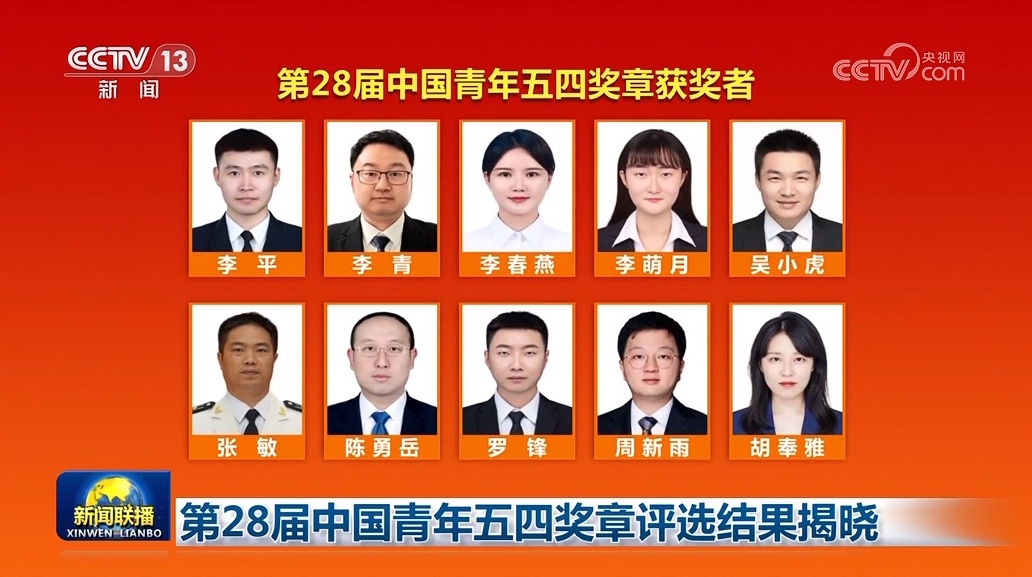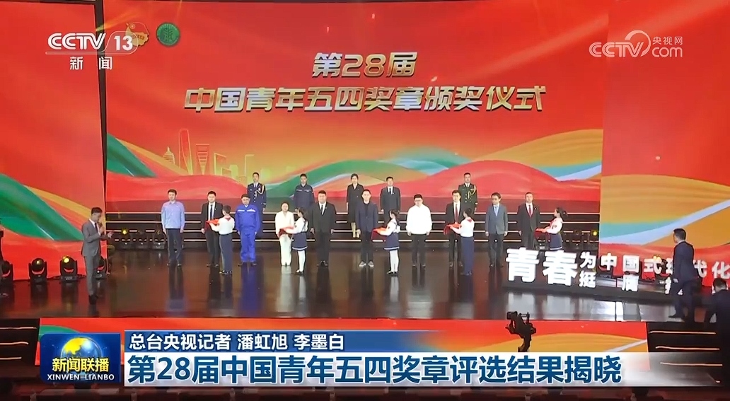 央視網(wǎng)消息(新聞聯(lián)播):在五四青年節(jié)到來之際,第28屆中國青年五四獎?wù)略u選結(jié)果揭曉。