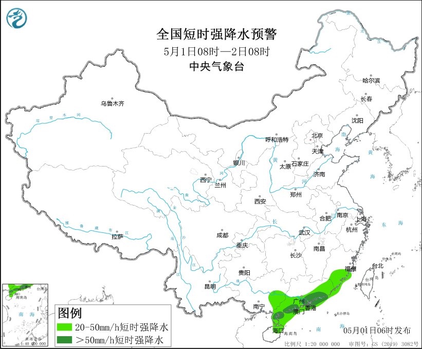 央視網消息:中央氣象臺5月1日06時發(fā)布強對流天氣藍色預警:預計5月1日08時至2日08時,廣東南部及沿岸海域等地的部分地區(qū)將有8-10級雷暴大風或冰雹天氣,最大風力11級以上;福建東南部、廣西東部、廣東中南部、海南島東北部及華南沿岸海域等地的部分地區(qū)將有小時雨量大于20毫米的短時強降水天氣,其中廣東南部及沿岸海域等地局地最大小時雨量大于50毫米,最大可達70毫米以上。