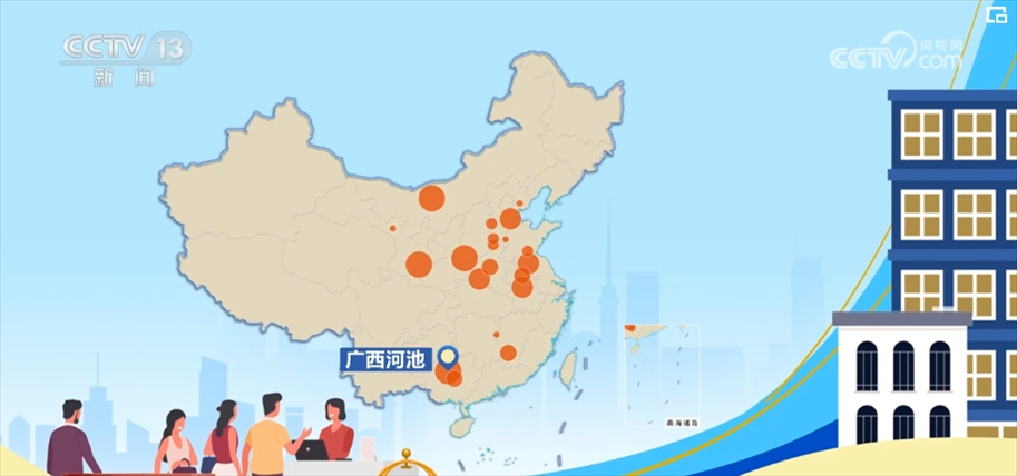 大家都去哪兒了?通過分析平臺(tái)上335個(gè)目的地的同比增幅數(shù)據(jù)后,找到了2024年“五一”最受歡迎的小眾旅游目的地。在這張熱力圖上,標(biāo)注的是增幅前20的小眾目的地城市,圓圈大小表示增幅的高低,排名第一的廣西河池的酒店和票務(wù)預(yù)訂同比增長近四倍,而分布在10個(gè)不同省份的這20個(gè)城市,同比增幅都在一倍以上。