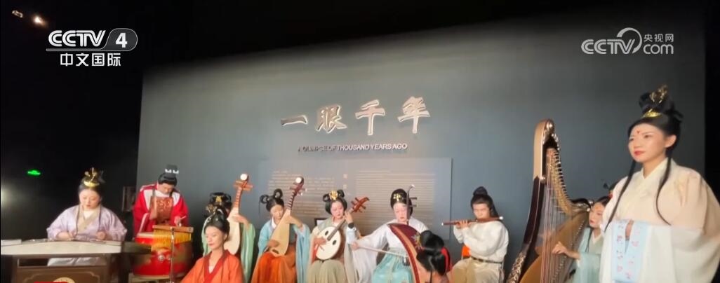 在山西太原北齊壁畫(huà)博物館,一場(chǎng)“文物”和“音樂(lè)”、“傳承”和“創(chuàng)新”的音樂(lè)會(huì)正在上演。樂(lè)師用古琴、琵琶、箜篌、笛子等民族樂(lè)器演繹出了《一眼千年·夢(mèng)回北齊》,將北齊時(shí)期武安王徐顯秀墓室中的《夫婦宴飲圖》壁畫(huà)中的樂(lè)隊(duì)場(chǎng)景完美呈現(xiàn)。而在互動(dòng)體驗(yàn)區(qū),觀眾撥動(dòng)電子屏上的琴弦,就可以和投影墻上的樂(lè)伎共彈一曲。