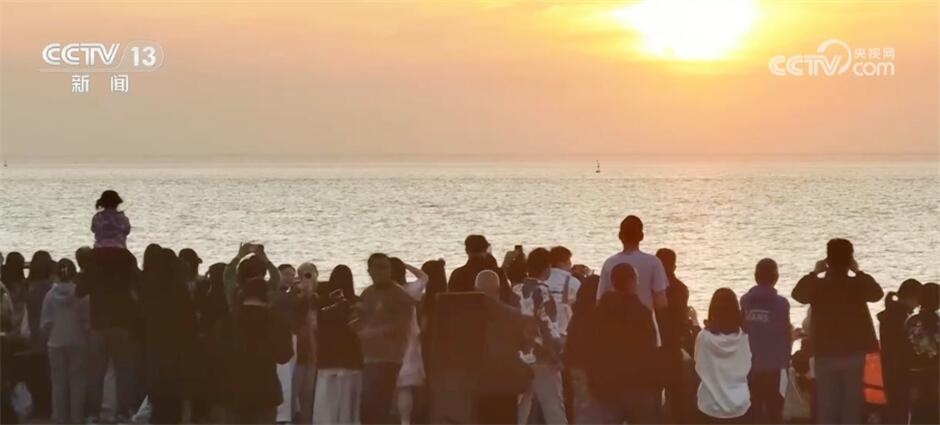 這兩天,浙江海鹽縣的觀海園吸引了來自全國各地的游客,共賞“最美日出”。凌晨五點多,晨曦微露,海鹽縣觀海園的魚鱗海塘邊,近萬人靜靜守候,當?shù)谝豢|陽光刺破云層,游客們紛紛拿出手機、相機記錄下這動人一刻。