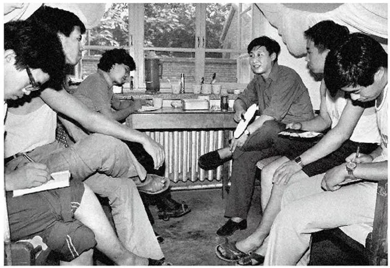 1984年7月29日,習近平與中國人民大學暑期社會實踐團成員在正定縣政府招待所宿舍座談。