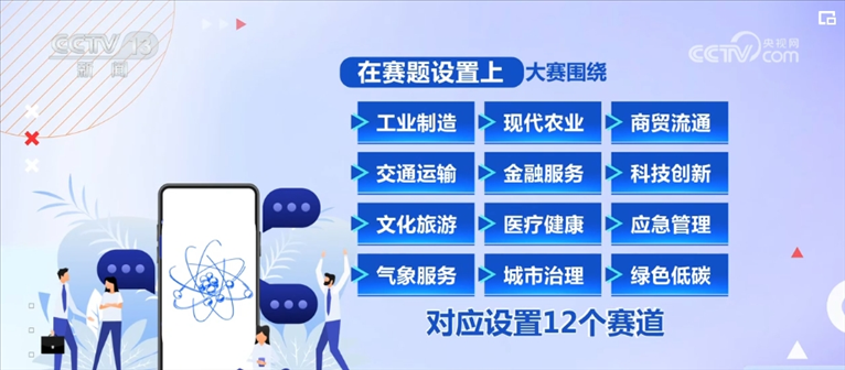 在賽題設(shè)置上,大賽圍繞工業(yè)制造、現(xiàn)代農(nóng)業(yè)、商貿(mào)流通、交通運(yùn)輸、金融服務(wù)、科技創(chuàng)新、文化旅游、醫(yī)療健康、應(yīng)急管理、氣象服務(wù)、城市治理、綠色低碳12個(gè)行業(yè)及領(lǐng)域,對(duì)應(yīng)設(shè)置12個(gè)賽道。