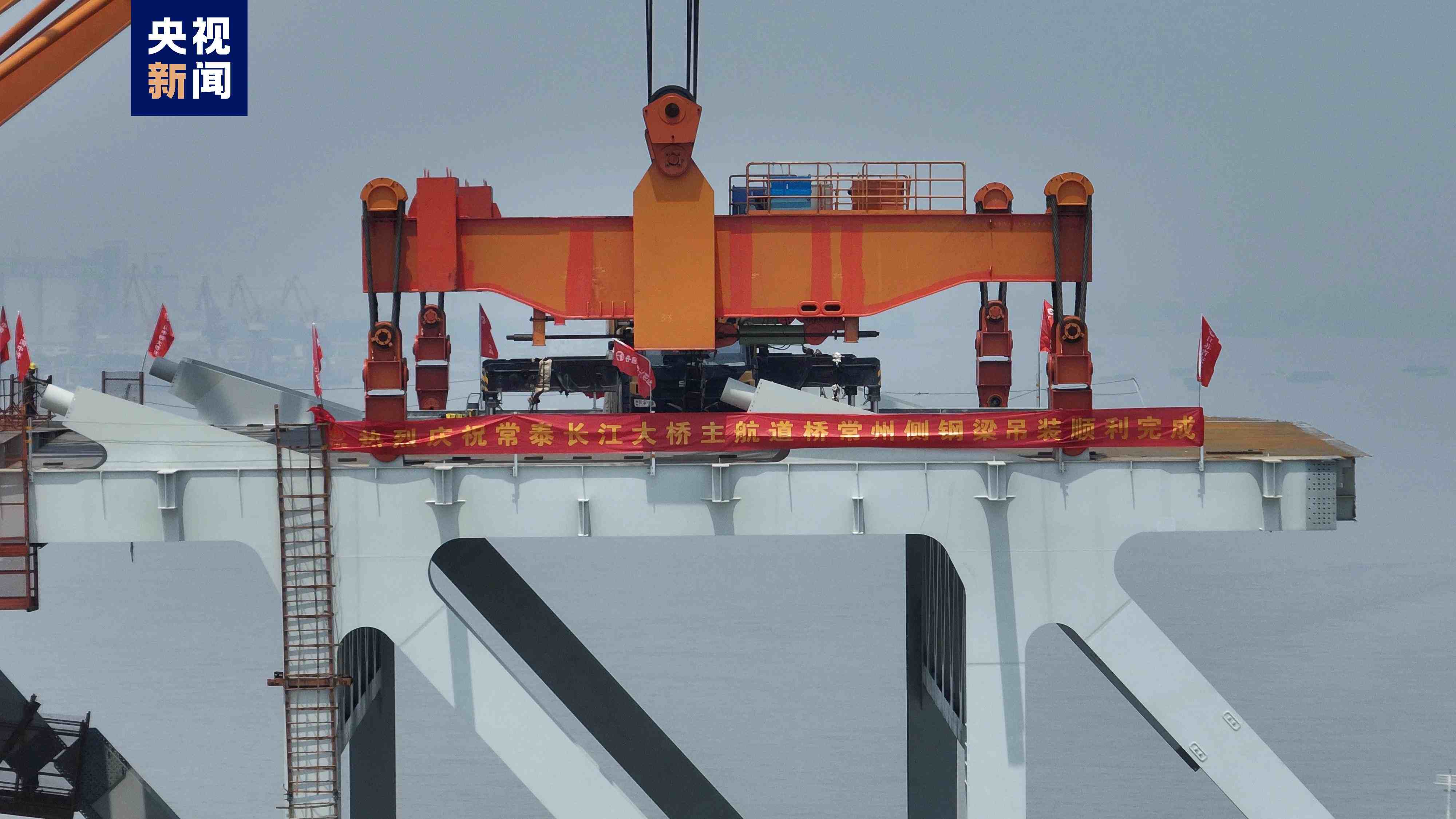 5月7日上午,常泰長(zhǎng)江大橋主航道橋常州側(cè),最后一個(gè)大節(jié)段鋼梁平穩(wěn)吊裝完成,標(biāo)志著常泰長(zhǎng)江大橋常州側(cè)主體工程全部完成,全橋預(yù)計(jì)6月合龍。
