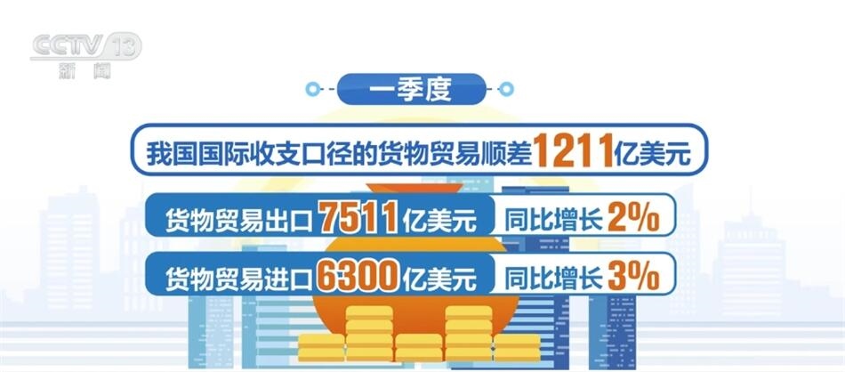 一季度,我國(guó)國(guó)際收支口徑的貨物貿(mào)易順差1211億美元,其中,貨物貿(mào)易出口7511億美元,同比增長(zhǎng)2%;進(jìn)口6300億美元,同比增長(zhǎng)3%。一季度,我國(guó)對(duì)外股權(quán)性質(zhì)直接投資凈流出257億美元;來(lái)華股權(quán)性質(zhì)直接投資凈流入190億美元。我國(guó)國(guó)際收支保持基本平衡,貨物貿(mào)易保持順差,雙向跨境資金流動(dòng)保持合理有序。