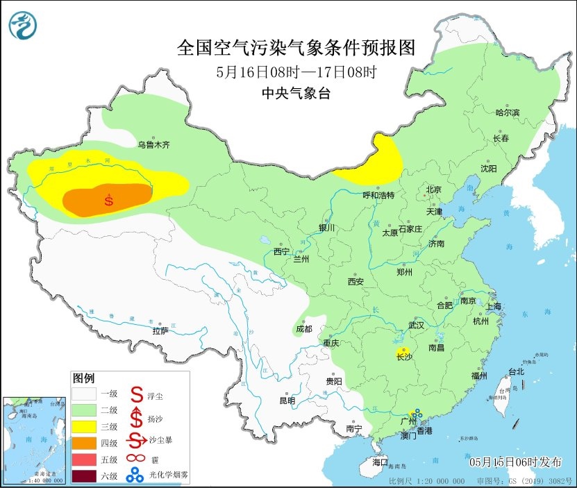 央視網(wǎng)消息:據(jù)中央氣象臺(tái)網(wǎng)站消息,預(yù)計(jì),5月15日08時(shí)至16日08時(shí),新疆南部和東部、甘肅西部、內(nèi)蒙古西部、青海北部以及河南中部等地有揚(yáng)沙或浮塵天氣,其中新疆東部、甘肅西部、內(nèi)蒙古西部等地局地有沙塵暴,中央氣象臺(tái)5月15日06時(shí)繼續(xù)發(fā)布沙塵暴藍(lán)色預(yù)警。