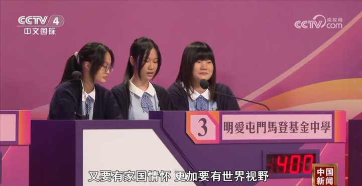 參賽學(xué)生鄧伯雯稱:“通過這次比賽,我們也學(xué)習(xí)到更多關(guān)于國家和香港的知識,對于國家其實(shí)有更強(qiáng)的自豪感。我們要去講好香港故事,要去宣傳好香港故事和中國故事,然后讓世界對于中國、對于香港有一個更好的認(rèn)識?!?/p>