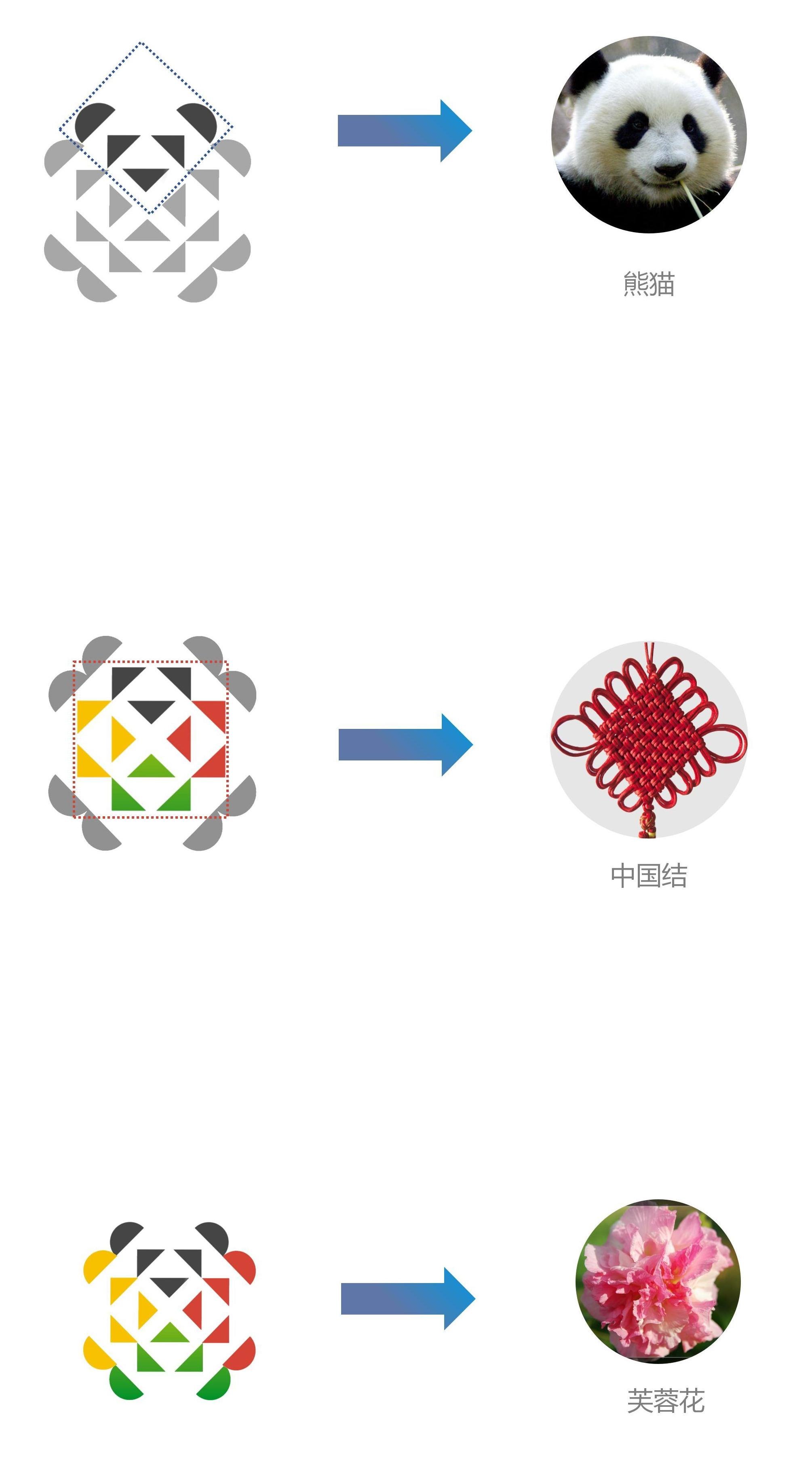 會徽設計靈感源于中國的大熊貓、芙蓉花和中國結(jié),以中國紅、金沙黃、公園綠、熊貓黑、雪山白為主色調(diào)。作為 2025 年成都世界運動會的重要標志,這一會徽有效傳達了奧林匹克精神又凸顯了中國傳統(tǒng)元素和成都特色,彰顯了“團結(jié)、包容、多樣性”的價值觀。同時,設計師秉承色彩明快、造型簡潔的設計理念,其外圍的半圓圖案和內(nèi)部排列的三角形,圍成一朵盛開的芙蓉花;紅、黑、黃、綠、白的幾何色塊拼出可愛的卡通大熊貓。