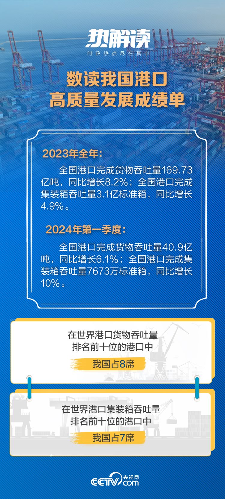 透過港口這扇窗,我們能看到“志在萬里”、向海圖強的戰(zhàn)略定力,也能深刻感受到中國經濟的強大韌勁和旺盛活力。