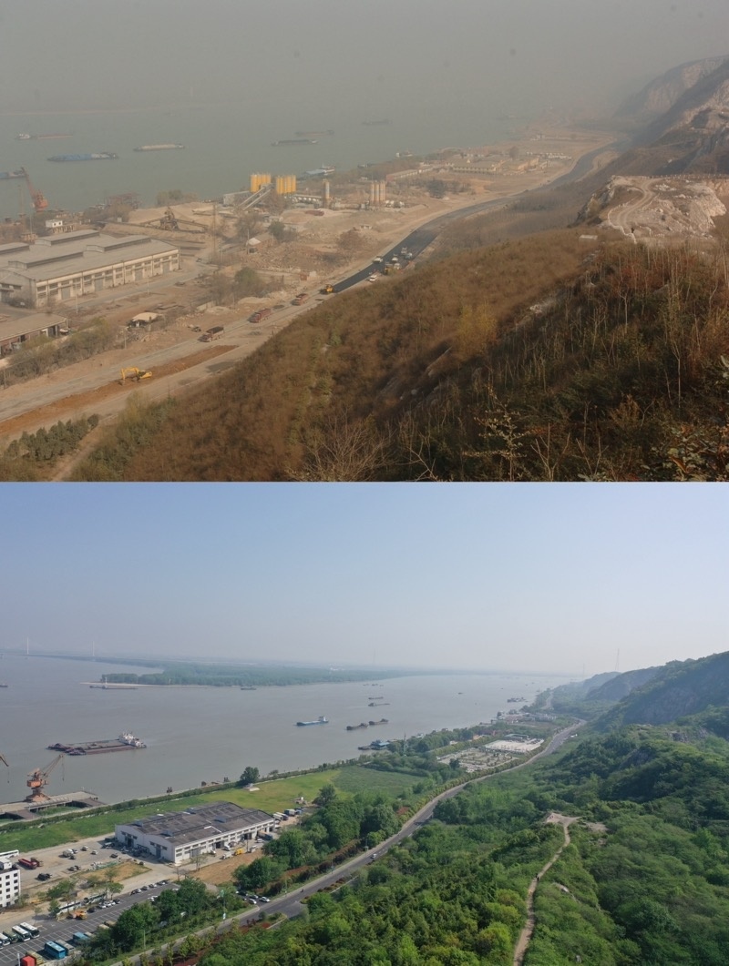 然而,幕府山曾是一座“灰頭土臉”的礦山,幕燕濱江片區(qū)曾是南京的“工業(yè)重鎮(zhèn)”和“化工基地”,片區(qū)的長江岸線主要為化工碼頭、倉儲、砂場等生產(chǎn)岸線,生產(chǎn)活動嚴(yán)重影響了長江生態(tài)環(huán)境。隨著南京城市發(fā)展步伐的加快,生態(tài)環(huán)境整治迫在眉睫。