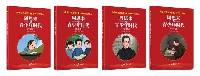 根據(jù)中共中央辦公廳印發(fā)的《關(guān)于推動黨史學(xué)習教育常態(tài)化長效化的意見》,以及教育部辦公廳印發(fā)的《關(guān)于在思政課中加強以黨史教育為重點的“四史”教育的通知》,2020年,在人民日報社副總編輯方江山的策劃和支持下,出版社約請時任中國社會科學(xué)院近代史所黨委書記金民卿和周恩來侄外孫、北京大鸞翔宇慈善基金會理事長沈清,主編“傳承紅色基因,培養(yǎng)時代新人”叢書。該叢書首批圖書包括《毛澤東的青少年時代》《周恩來的青少年時代》,書中截取了毛澤東、周恩來青少年時期的光輝片段,講述其成長、學(xué)習經(jīng)歷和積極投身革命的艱辛歷程。同時,考慮到不同年齡段學(xué)生的閱讀水平,又將圖書分為注音版、兒童版、少年版、青年版四個版本,用青少年喜聞樂見的方式,采取圖文并茂的形式,引導(dǎo)廣大青少年從小在心里深植紅色基因,樹立紅色理想。