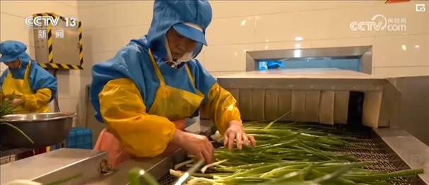 香蔥被運(yùn)輸?shù)疆?dāng)?shù)氐募庸S后,經(jīng)過(guò)洗、理、切、分揀裝盤(pán),然后就開(kāi)始了高科技的“蛻變”之旅。工人先把香蔥放入冷庫(kù)冷凍數(shù)小時(shí),然后立即抽真空“升華”干燥,經(jīng)過(guò)48小時(shí)左右的一系列工序后,一棵香蔥就變成了脫水蔬菜。留學(xué)回國(guó)創(chuàng)業(yè)的王一盛介紹,與過(guò)去使用的熱風(fēng)干燥技術(shù)相比,這種新技術(shù)不僅讓垛田香蔥最大程度鎖鮮,價(jià)格也比過(guò)去增加了五六倍。