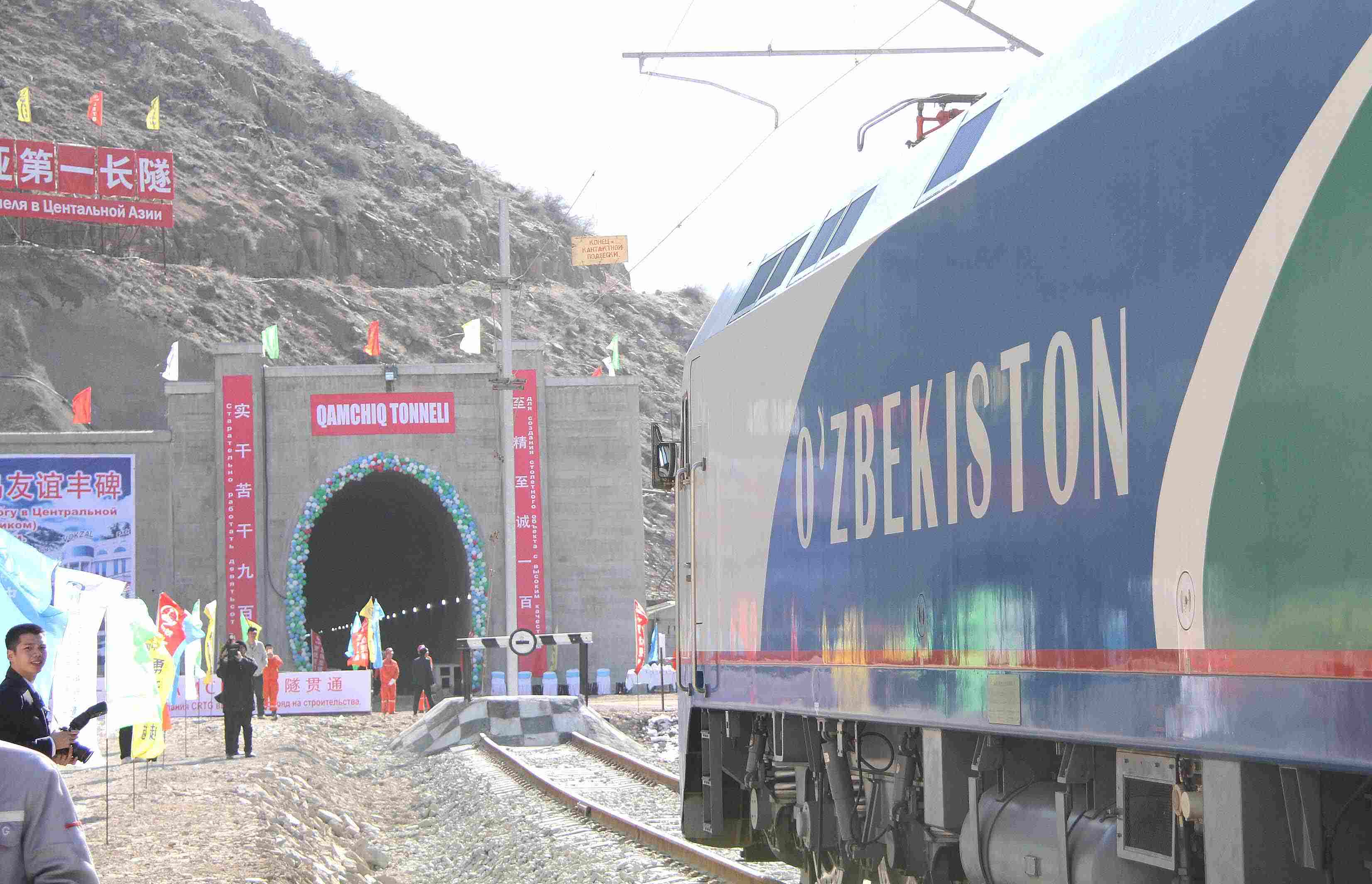 △ 2016年2月27日,一列專列停在烏茲別克斯坦安格連至琶布鐵路甘姆奇克隧道進(jìn)口。甘姆奇克隧道是中吉烏鐵路的重要一環(huán),對促進(jìn)烏茲別克斯坦經(jīng)濟(jì)社會發(fā)展和共建“一帶一路”倡議的實(shí)施具有重大意義。