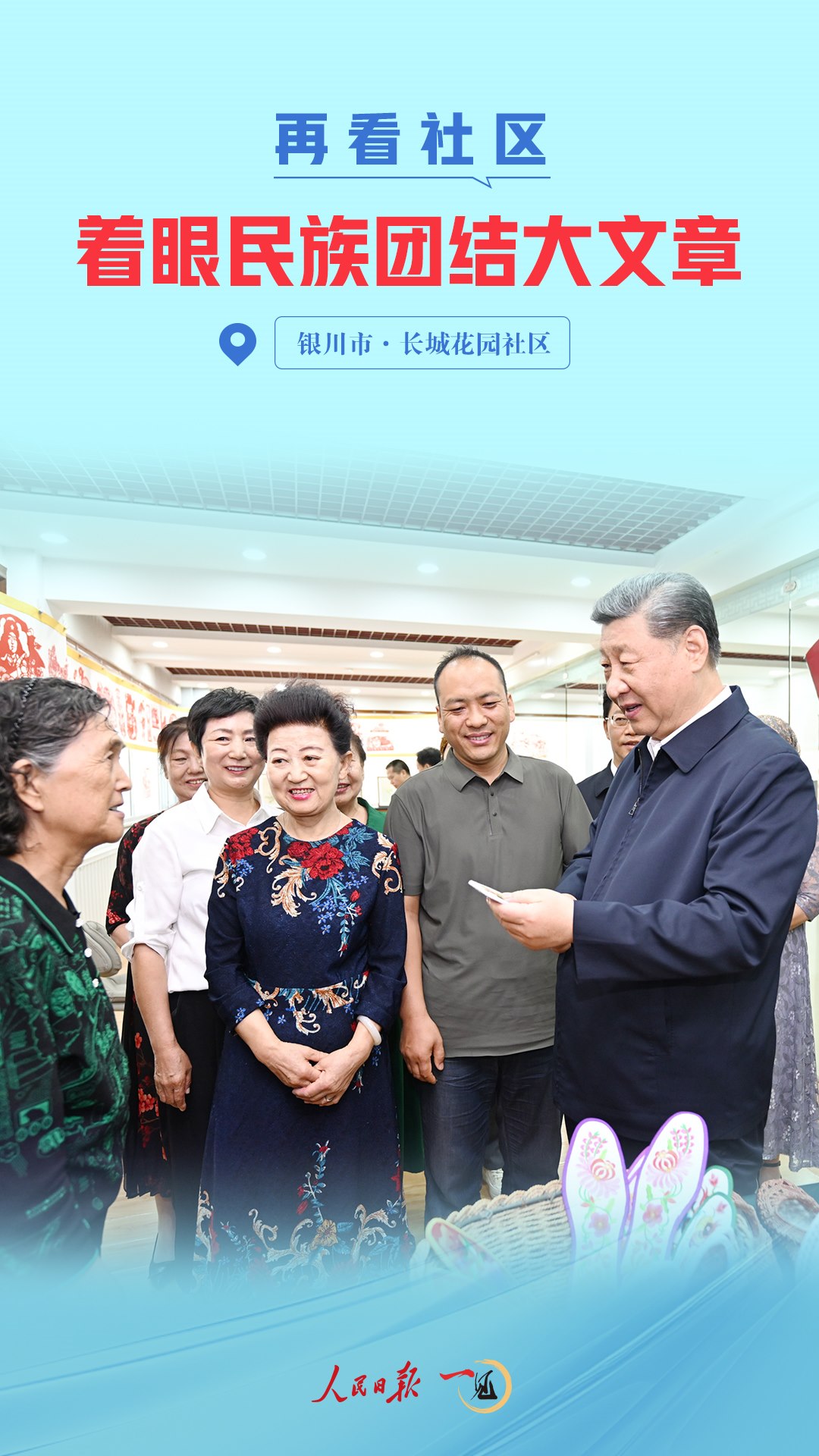 把民族團結(jié)搞得更好,基層社區(qū)是重要陣地。6月19日,習(xí)近平總書記來到寧夏考察調(diào)研,在銀川市金鳳區(qū)長城花園社區(qū),了解社區(qū)推動各族群眾交往交流交融等情況。