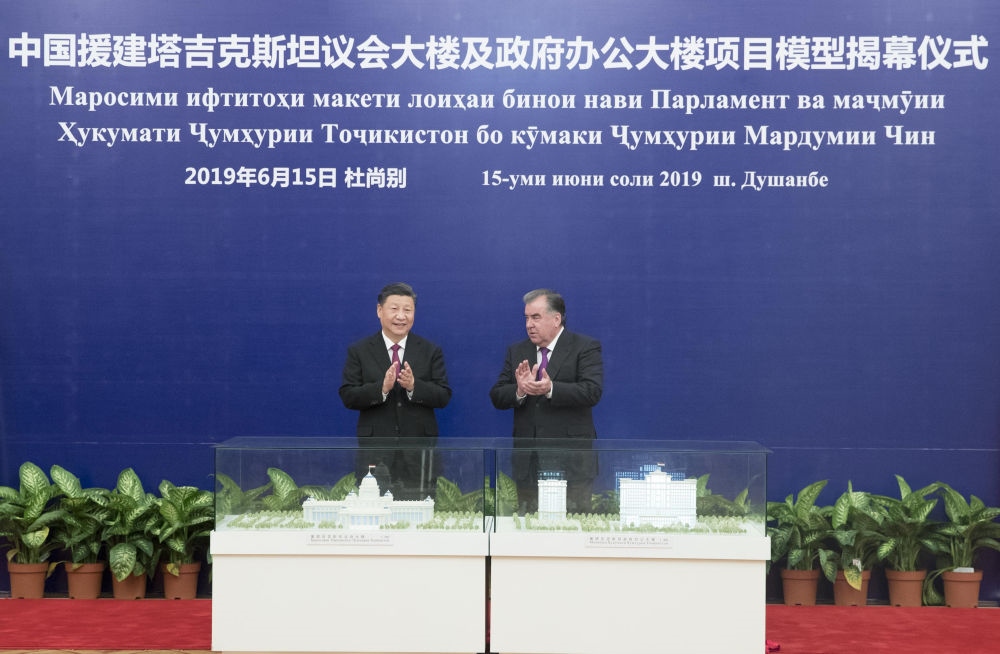 時(shí)光回到五年前,2019年6月15日,國家主席習(xí)近平在杜尚別同塔吉克斯坦總統(tǒng)拉赫蒙會(huì)談。會(huì)談后,兩國元首共同出席中方援塔議會(huì)大樓、政府辦公大樓項(xiàng)目模型揭幕儀式。