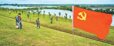 江蘇省南京市溧水區(qū)石湫街道光明村黨員干部在石臼湖大堤背水坡巡堤查險(xiǎn)。朱紅生攝(人民視覺(jué))