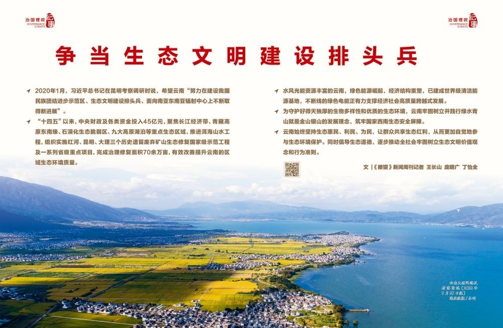 云南切實把生態(tài)文明建設(shè)擺在全局工作的突出位置,全面加強生態(tài)文明建設(shè),開啟美麗云南建設(shè)新征程。2022年5月,《云南省生態(tài)文明建設(shè)排頭兵規(guī)劃(2021—2025年)》發(fā)布,明確爭當(dāng)全國生態(tài)文明建設(shè)排頭兵目標(biāo)、主要任務(wù)和重大舉措,切實提升生態(tài)環(huán)境治理體系和治理能力現(xiàn)代化水平,全面形成綠色發(fā)展方式和生活方式。