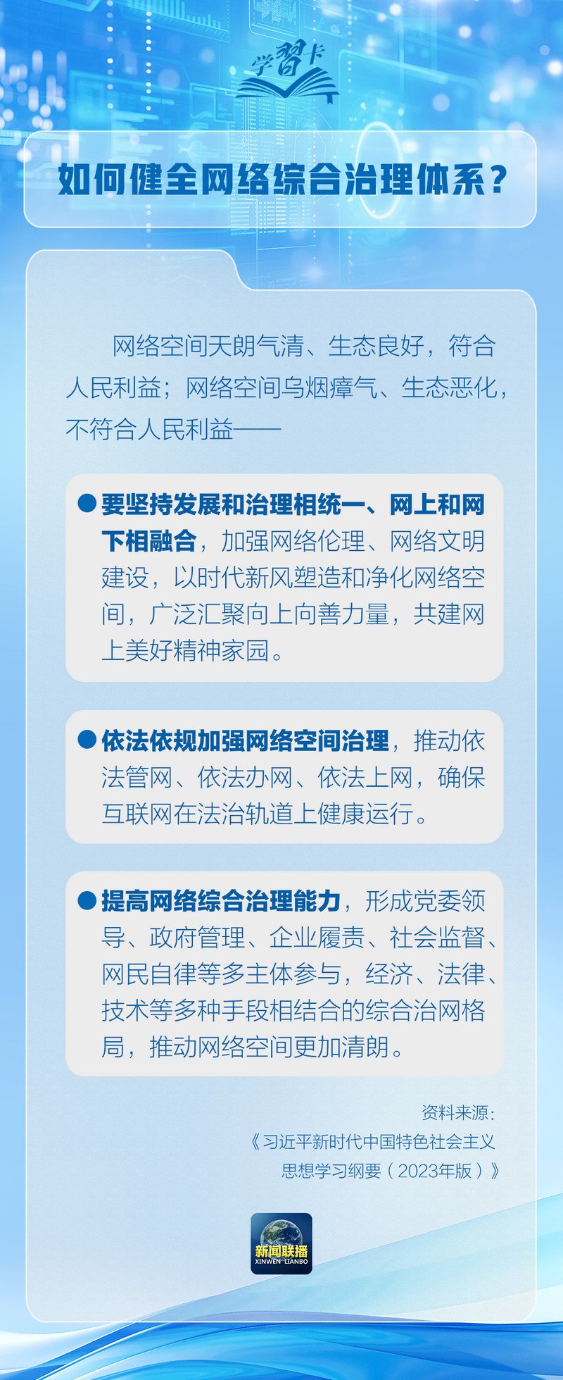 習(xí)近平總書記在《關(guān)于〈中共中央關(guān)于進(jìn)一步全面深化改革、推進(jìn)中國(guó)式現(xiàn)代化的決定〉的說明》中強(qiáng)調(diào)要健全網(wǎng)絡(luò)綜合治理體系。