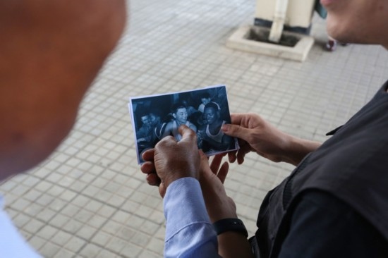 恩貢亞尼在看坦贊鐵路建設(shè)時期拍攝的老照片。