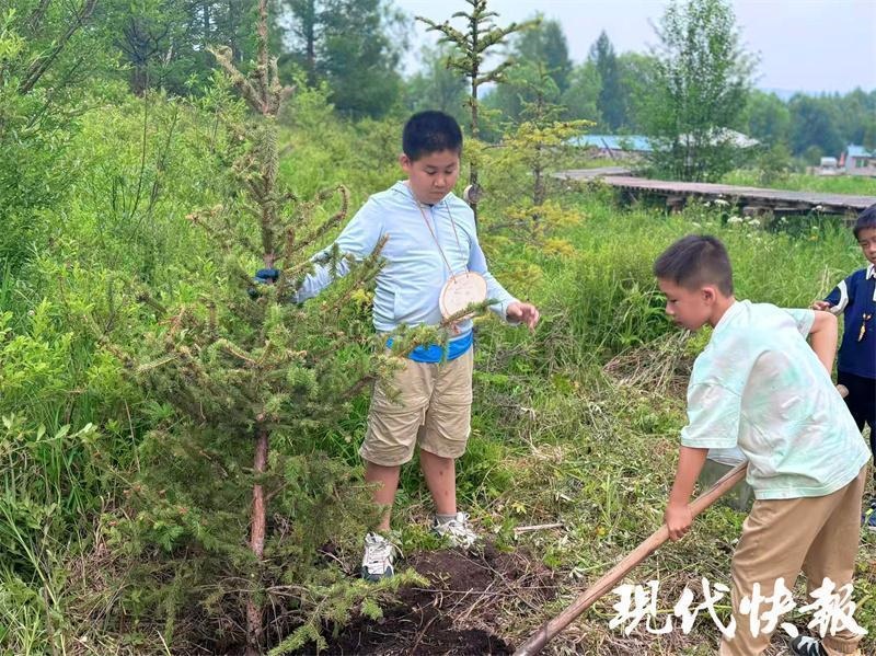這樣的美麗風(fēng)景讓第一次來到大草原的周云昊很興奮?!拔覀儚漠?dāng)?shù)亓私獾?,這是一代又一代人努力的結(jié)果,讓我們也深切感受到生態(tài)保護(hù)的重要性?!毖袑W(xué)途中,周云昊和小伙伴們還專門在當(dāng)?shù)亓謭龇N下一棵樹?!跋M芙】甸L大,成為守護(hù)綠色草原的小衛(wèi)士。”