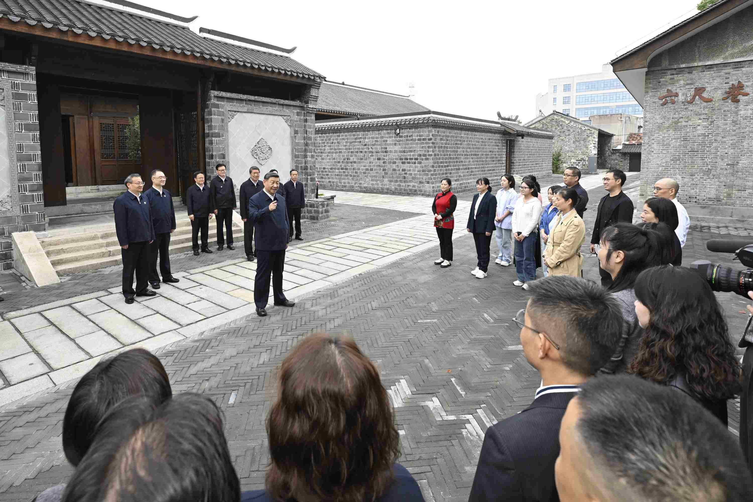 △2024年10月17日,習(xí)近平總書記在安徽省安慶桐城市六尺巷考察時,同當?shù)鼐用窈陀慰陀H切交流。
