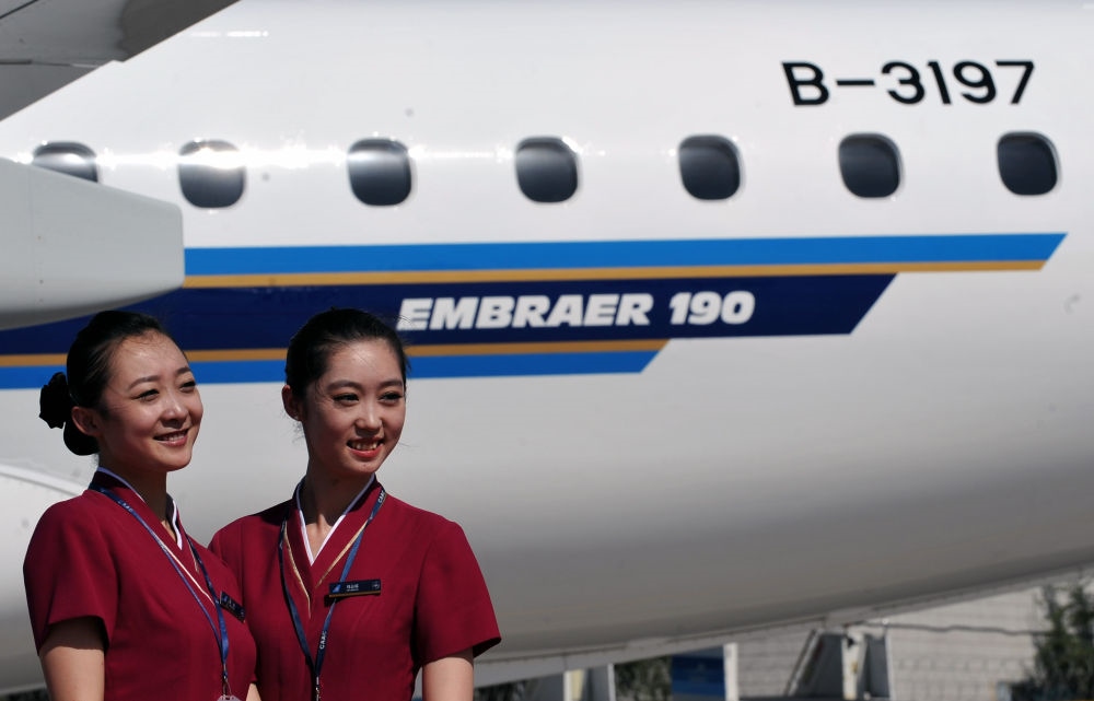 2011年8月16日,巴西航空工業(yè)公司生產(chǎn)的EMB190噴氣式飛機(jī)抵達(dá)烏魯木齊國(guó)際機(jī)場(chǎng),正式加入南航新疆分公司機(jī)隊(duì)。這是南航空乘人員在飛機(jī)前合影。