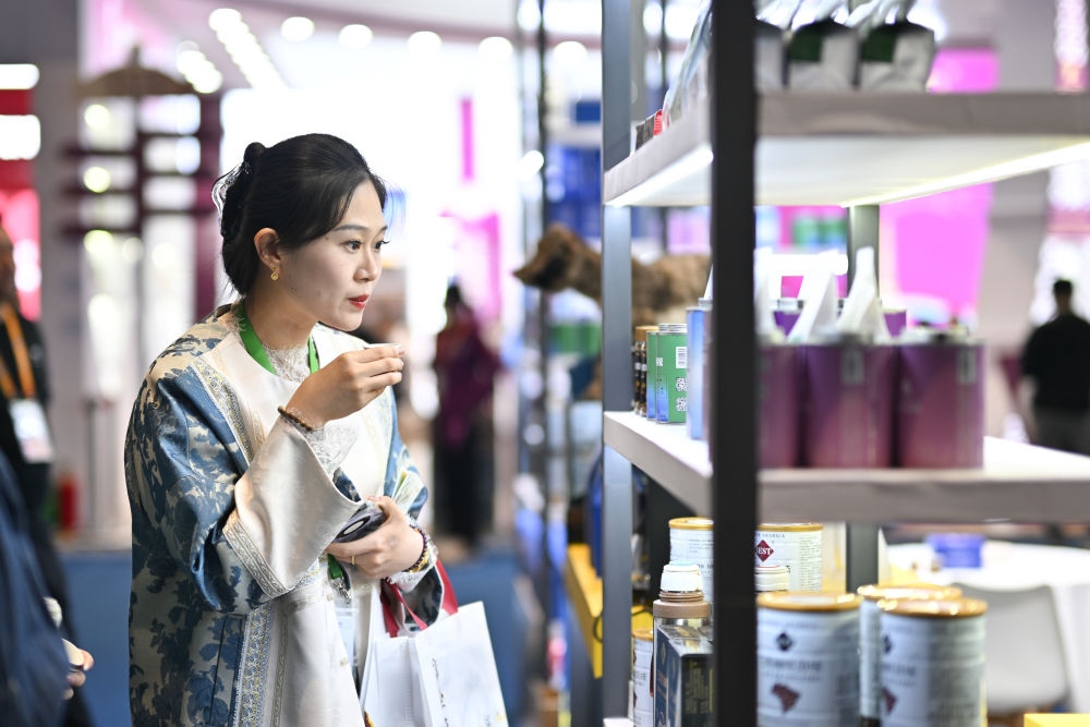 2024年11月6日,參會(huì)人員在上海舉行的第七屆進(jìn)博會(huì)食品及農(nóng)產(chǎn)品展區(qū)品嘗來(lái)自巴西的咖啡。