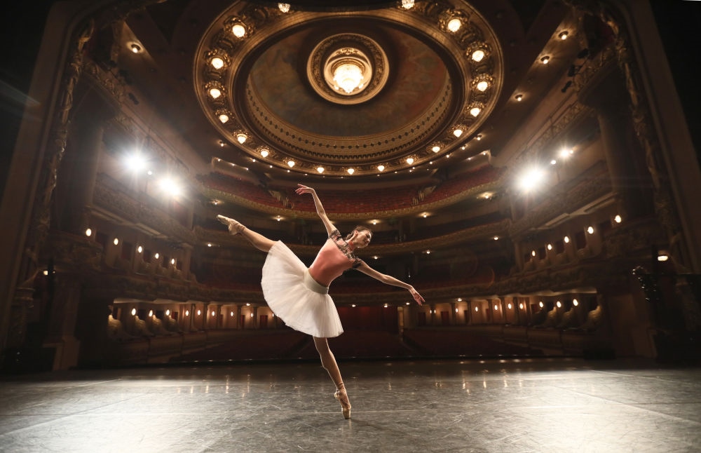 2019年5月24日,中央芭蕾舞團(tuán)演員方夢(mèng)穎在巴西里約熱內(nèi)盧市政劇院排練。中央芭蕾舞團(tuán)攜《大紅燈籠高高掛》來(lái)到巴西,為當(dāng)?shù)孛癖姭I(xiàn)上帶有濃郁中國(guó)元素的精彩表演。