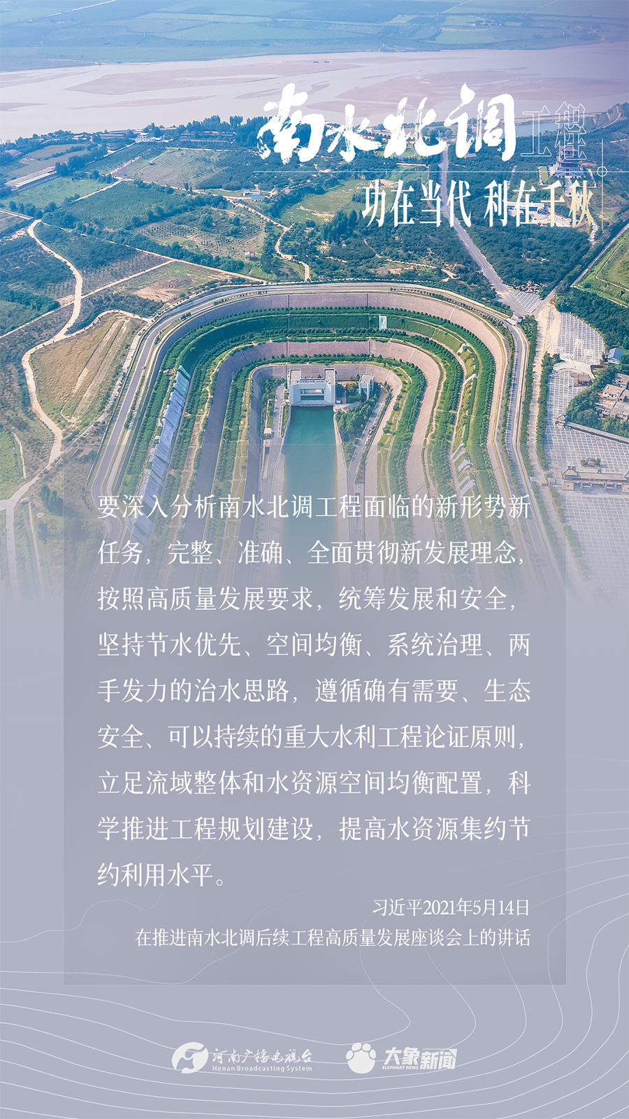 今年是南水北調(diào)東、中線一期工程通水10周年。南水北調(diào)工程事關(guān)戰(zhàn)略全局、事關(guān)長遠發(fā)展、事關(guān)人民福祉,一直是習近平總書記的牽掛。黨的十八大以來,總書記多次實地考察項目進展、運行,作出重要講話重要指示批示,為南水北調(diào)工程持續(xù)高質(zhì)量發(fā)展指明方向。