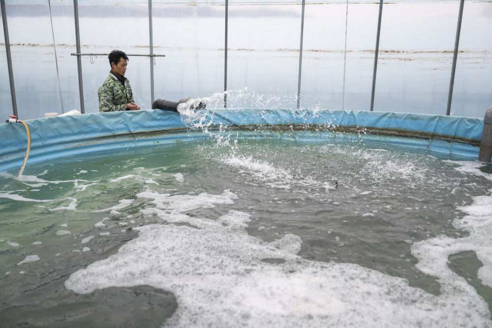 2024年12月8日,湖北農(nóng)發(fā)(丹江口)漁業(yè)科技有限公司工作人員在給魚池放水。品質(zhì)調(diào)控車間內(nèi)的尾水經(jīng)過(guò)四級(jí)沉淀池后排入生態(tài)塘凈化處理,后進(jìn)行循環(huán)使用從而減少污染。